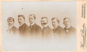 [[Datei:Landsmannschaft Hercynia Jena-CDV 1919.jpg|thumb|[[CdV]] eines mit [[Schmiss]]en versehenen Studenten (1919)]] | [[Datei:Landsmannschaft Hercynia Jena-CDV 1919.jpg|thumb|[[CdV]] eines mit [[Schmiss]]en versehenen Studenten (1919)]] | ||