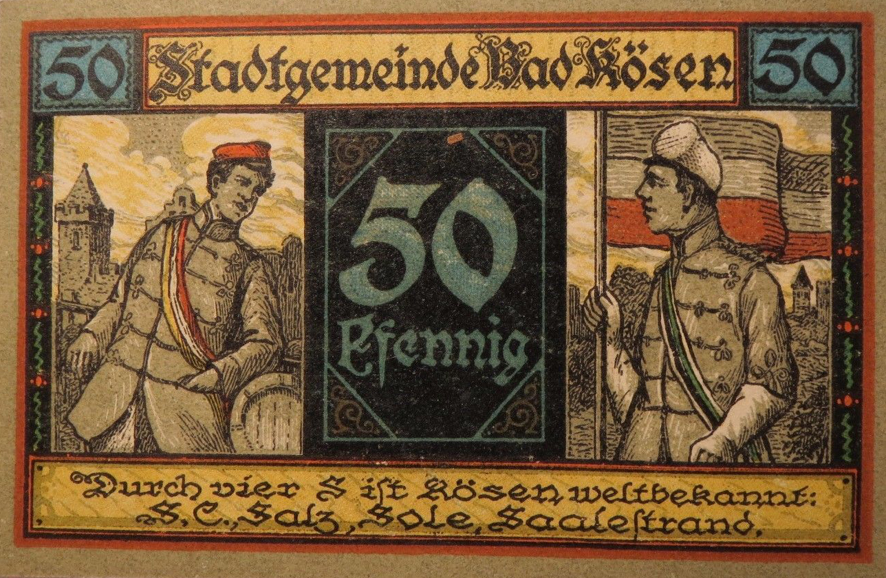 Notgeld der Stadt Bad Kösen mit der Abbildung von Korporierten. Quelle: gemeinfrei