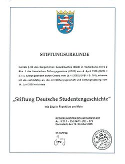 - 2005 (14.): Errichtung der Stiftung Deutsche Studentengeschichte